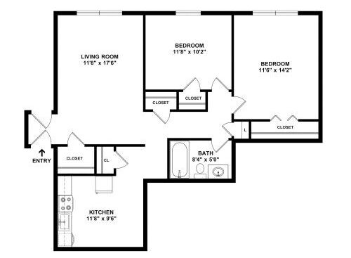 • C5R - 2 Bedroom 2 Bathroom Balcony/Patio* (Renovated): Beds - 2: Baths - 2: SqFt Range - 1187 to 1187