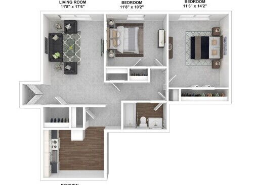 Renderings are intended only as a general reference. Features, materials, finishes and layout of units may be different than shown. For more details, ask a leasing representative about specific apartment features.